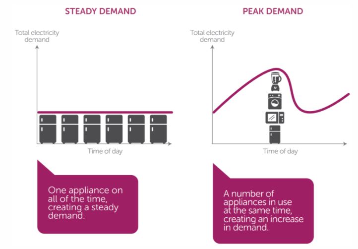 • Demand: Customers pay depending on the maximum amount of electricity they use during a particular period. For example, the charge may be applied to the maximum amount of electricity used by the customer:
